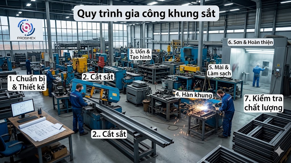 Hình 1: Quy trình gia công khung sắt tại xưởng Prosimex