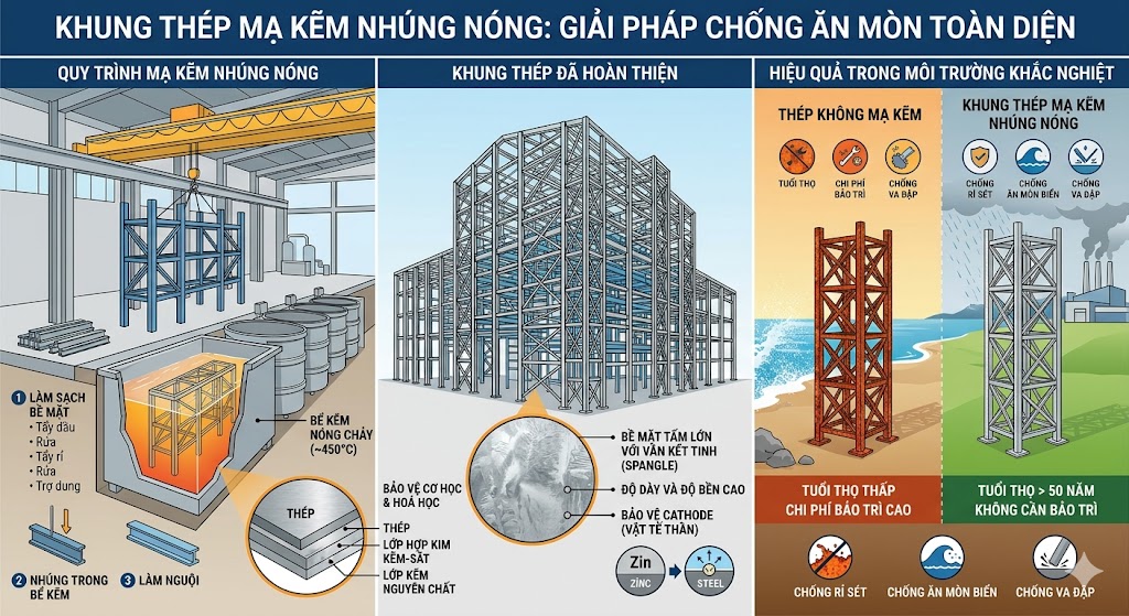 Hình 4: Khung thép mạ kẽm nhúng nóng chống ăn mòn hiệu quả