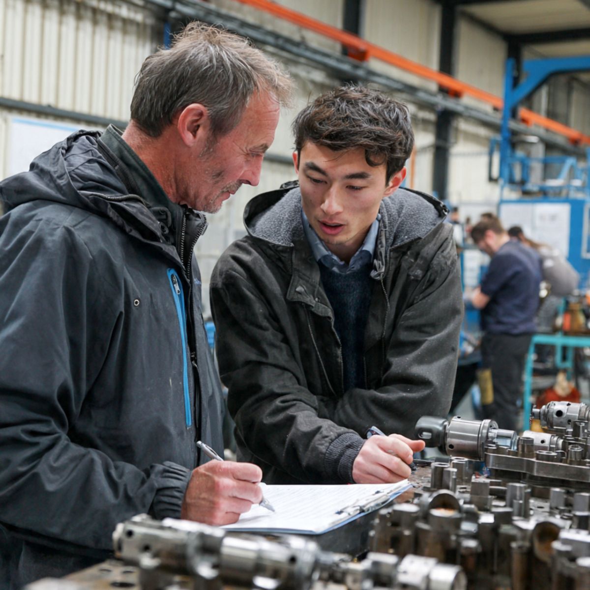 📸 Hình 2: Kỹ sư kiểm tra bản vẽ kỹ thuật chi tiết