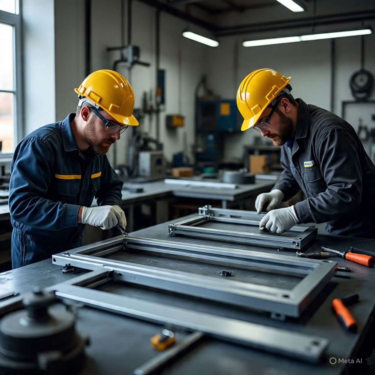📸 Hình 2: Thanh nhôm và khung thép được gia công và kiểm tra độ bền trước khi đưa vào bộ kit