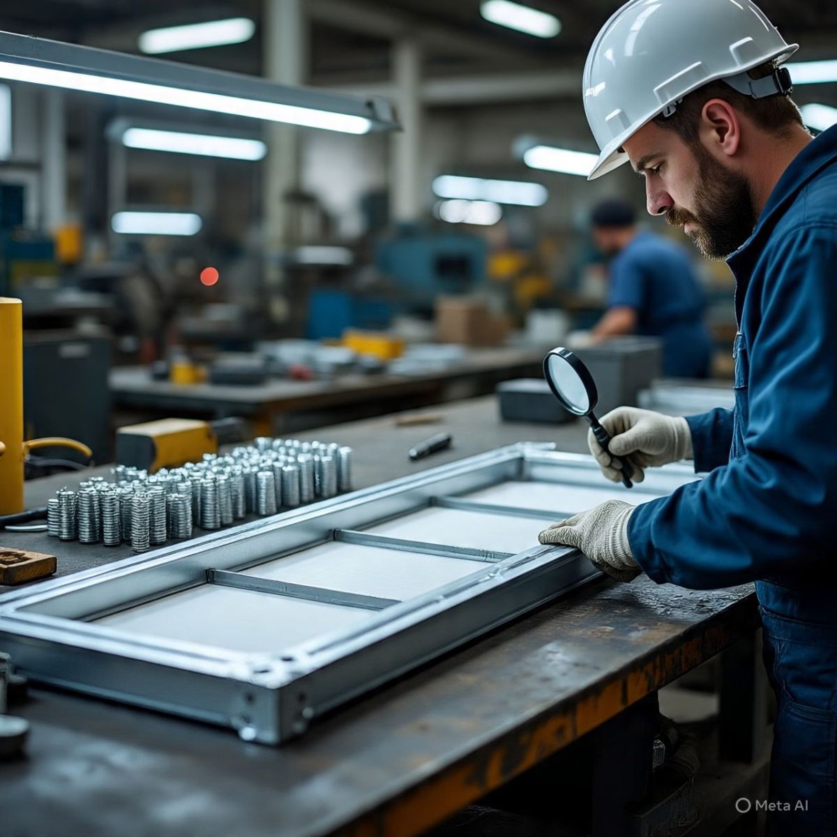 📸 Hình 3: Gia công và kiểm tra chất lượng khung nhôm, ốc vít trước khi đóng gói