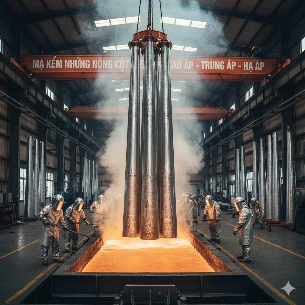 Hình 5: Mạ kẽm nhúng nóng cột đèn cao áp – trung áp – hạ áp tại Prosimex