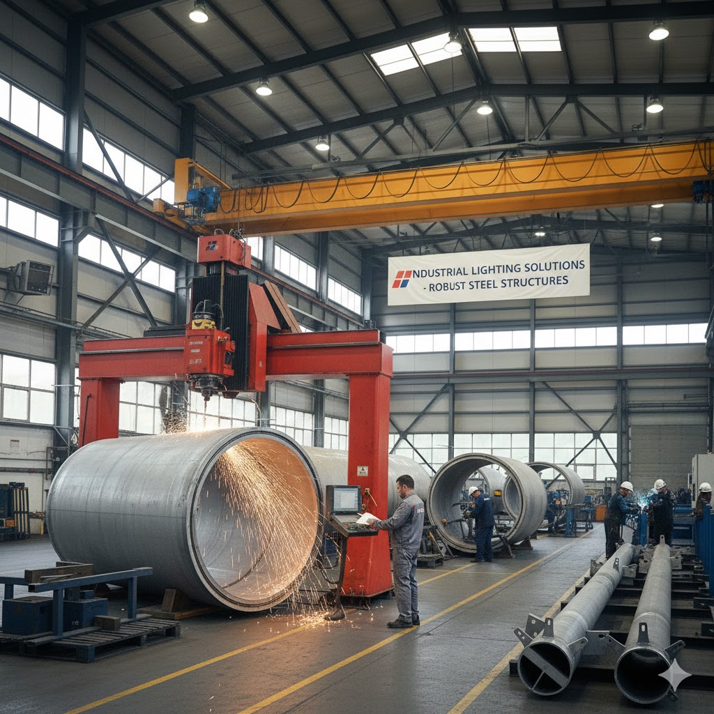 Hình 5: Gia công cột đèn chiếu sáng công nghiệp – kết cấu thép chắc chắn