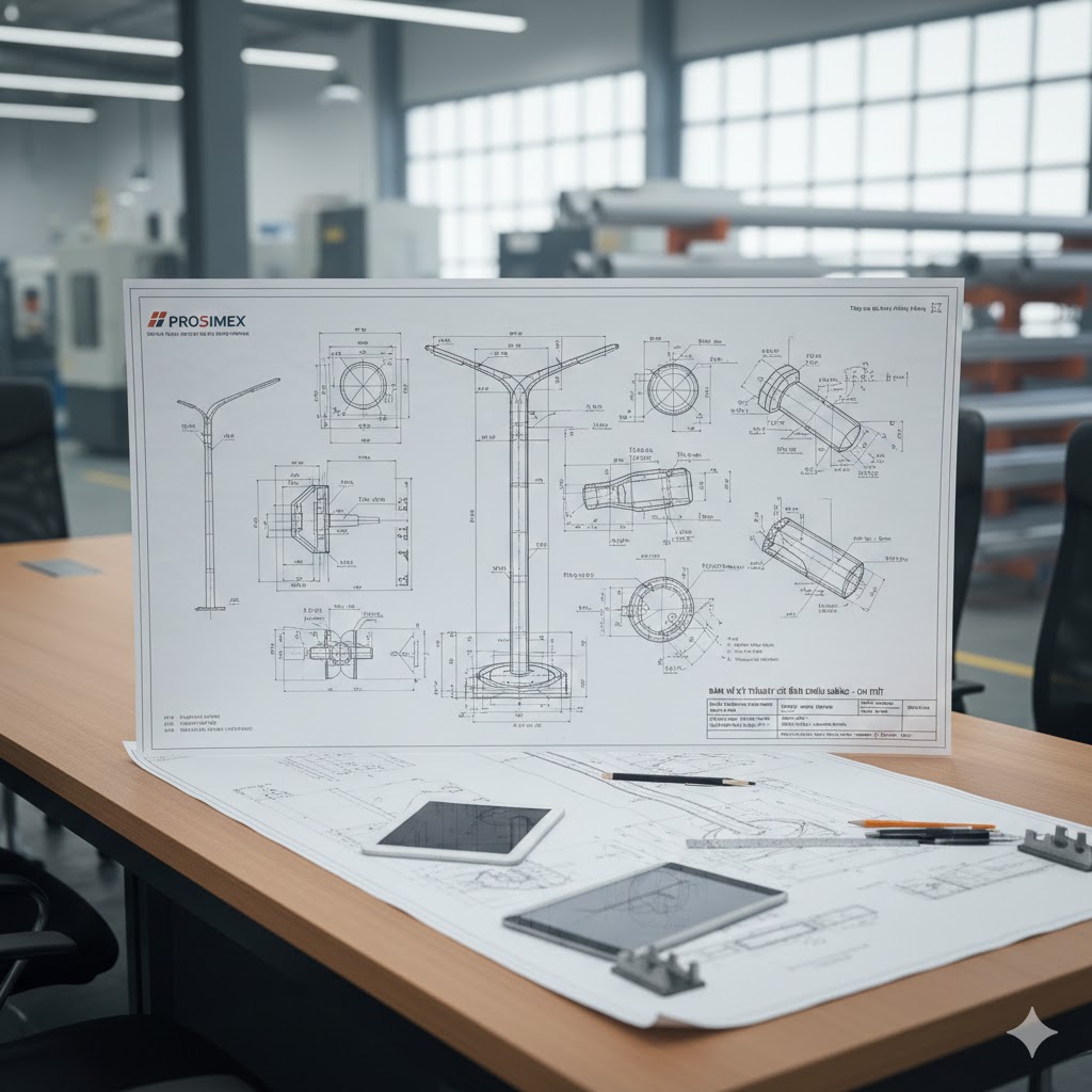 QUY TRÌNH GIA CÔNG CỘT ĐÈN THEO BẢN VẼ TẠI CƠ KHÍ PROSIMEX