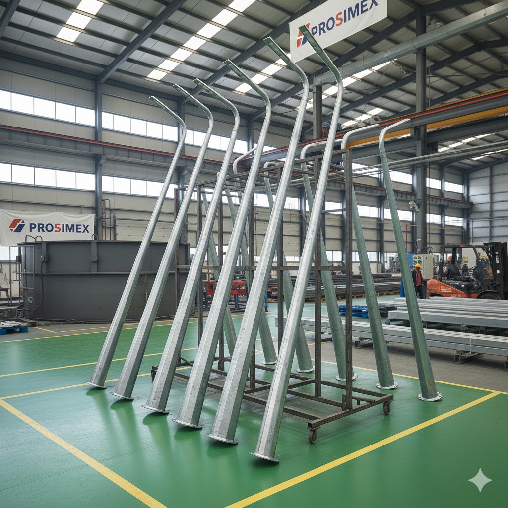👉 Hình 2: Nhiều loại cột đèn được gia công theo bản vẽ kỹ thuật tại Prosimex