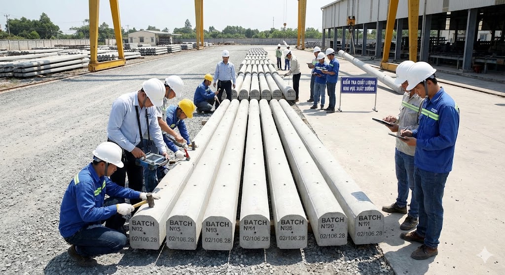 Hình 3: Kiểm tra cột điện bê tông trước khi xuất xưởng