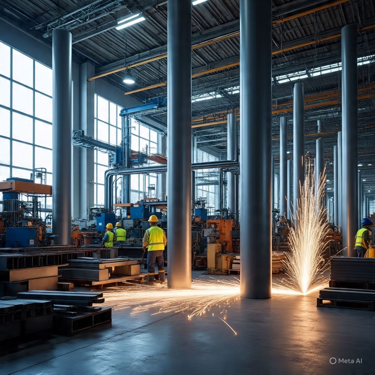 - Cắt, hàn, định hình thép