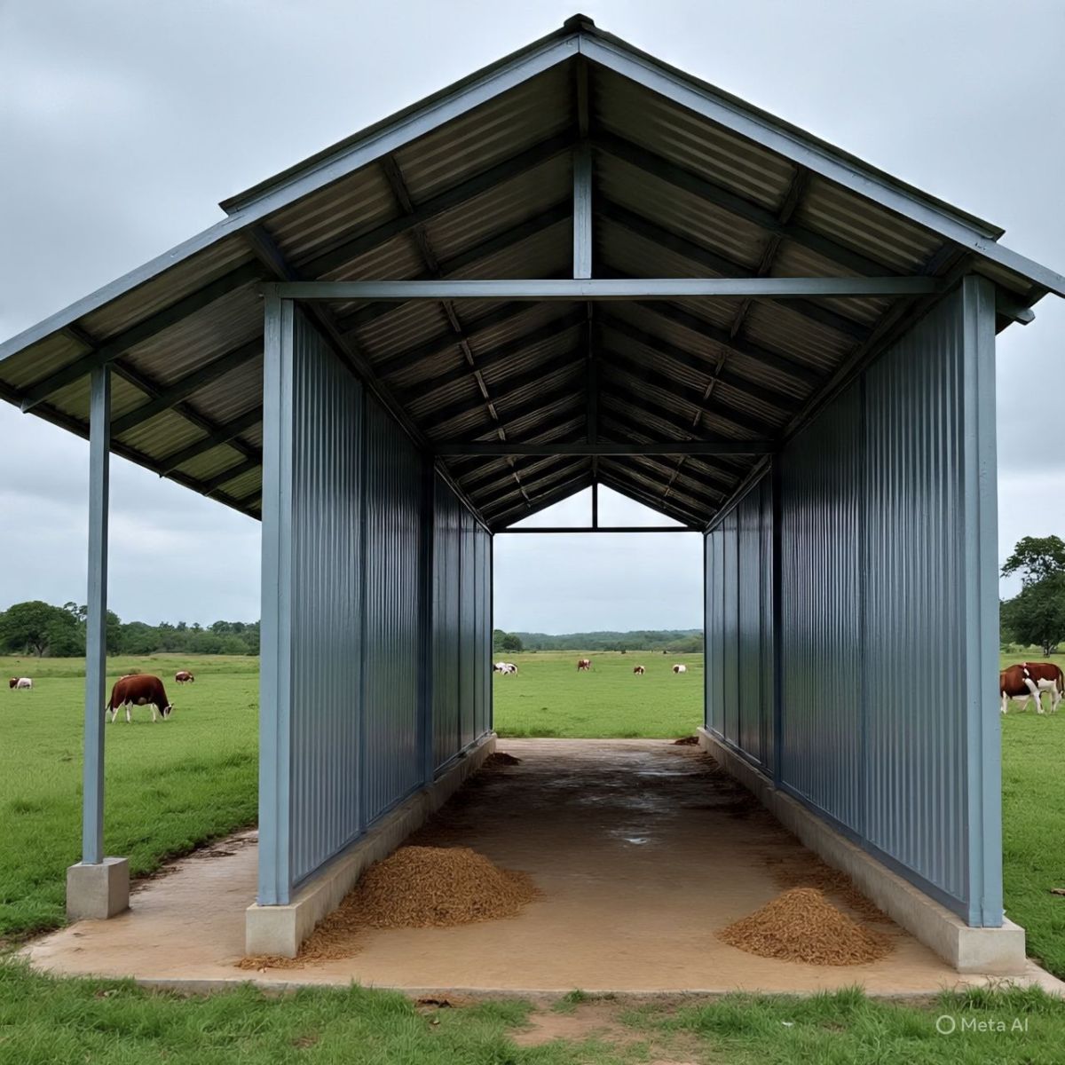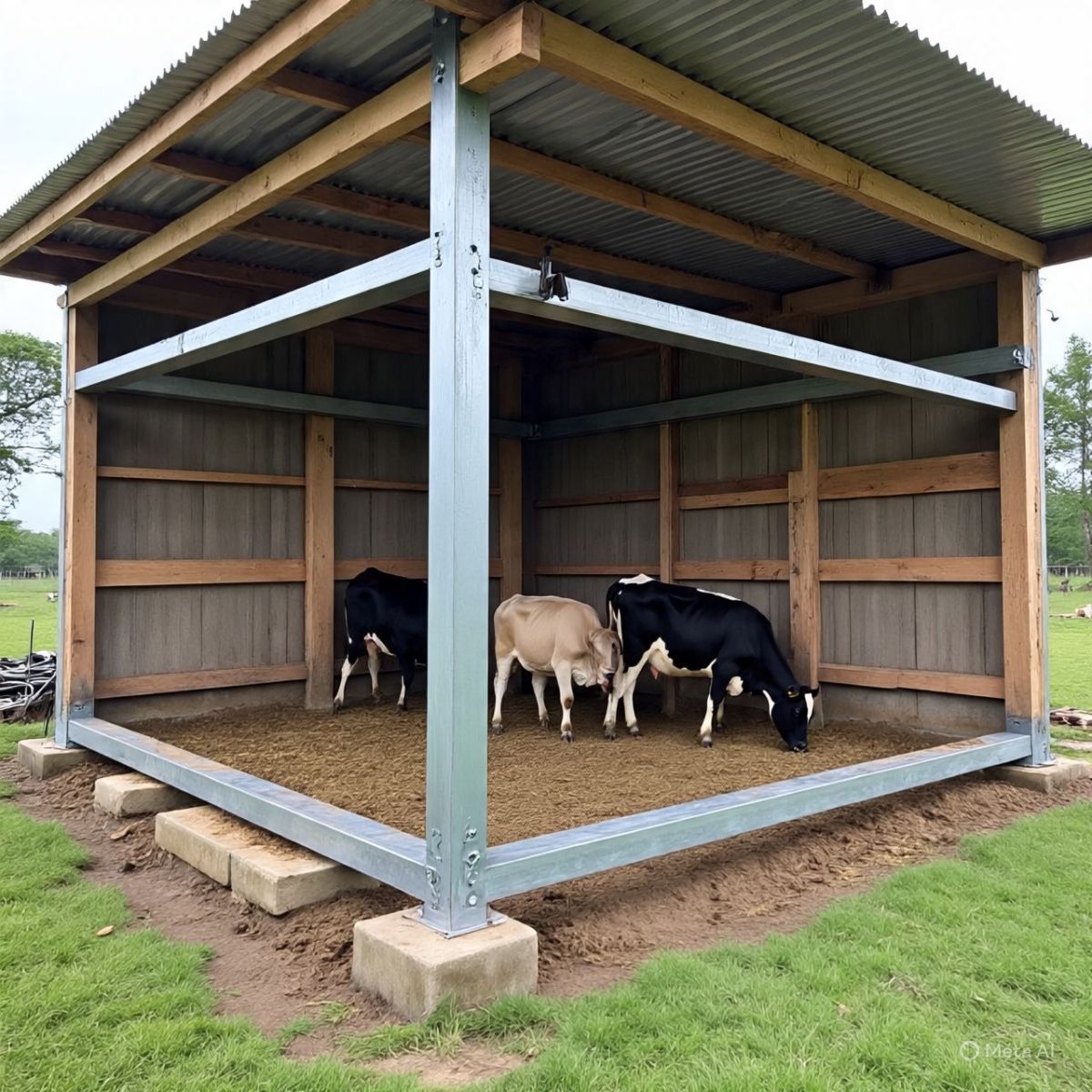 - Mái tôn cách nhiệt: Bảo vệ bò khỏi nắng nóng, giảm nhiệt độ