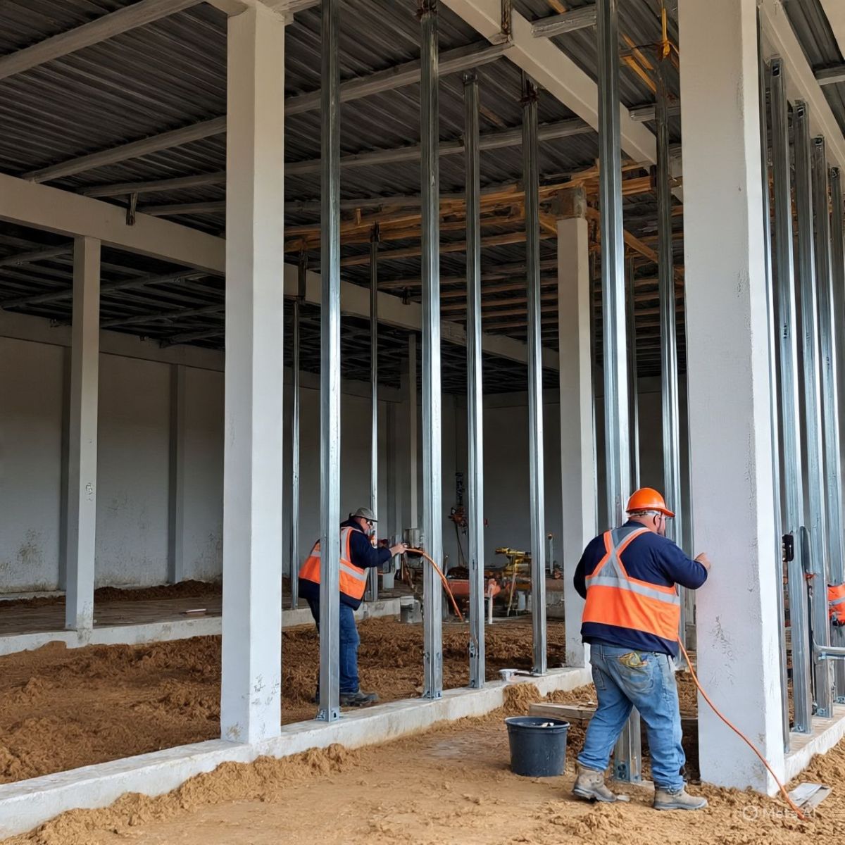 Hình 3: 🖼️ Quy trình lắp đặt cột, kèo, giằng thép tại chuồng bò sữa
