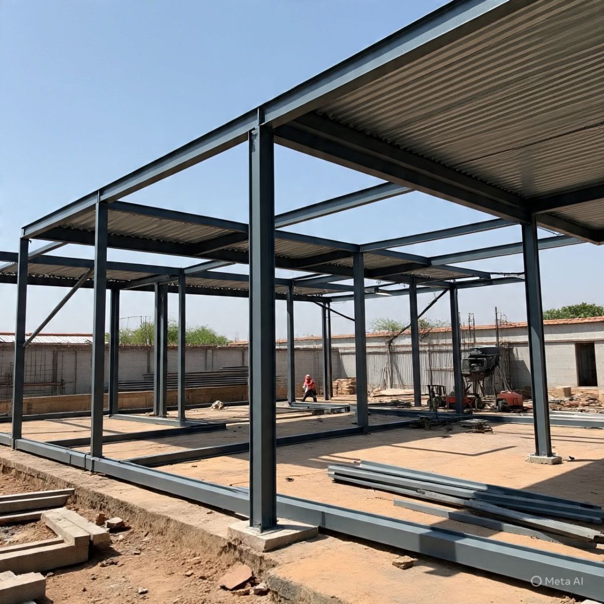- Cột thép: Chịu toàn bộ tải trọng mái, phân bổ lực xuống nền móng.