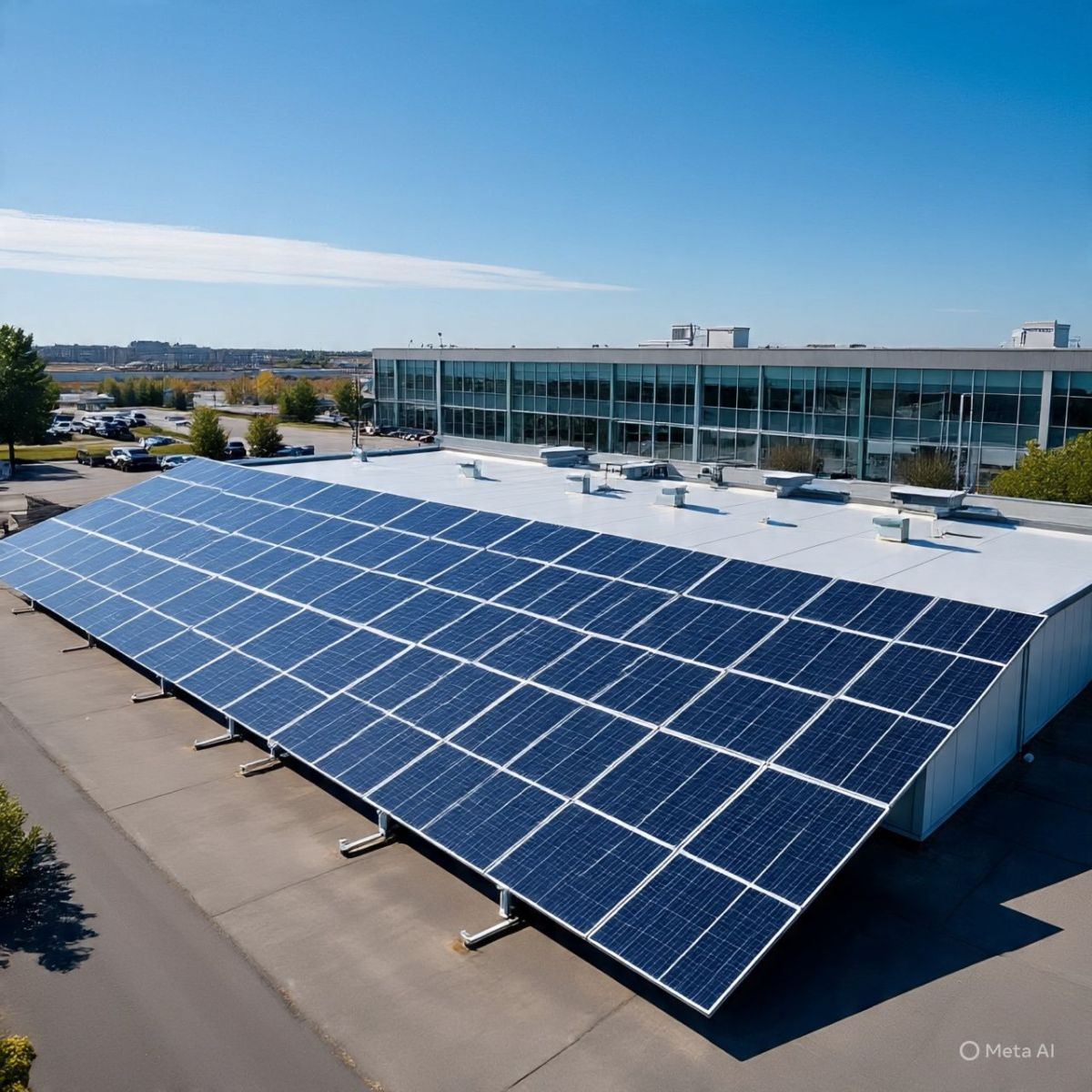 Hình minh họa 4: Hệ thống khung pin mặt trời quy mô lớn tại khu công nghiệp 🏢