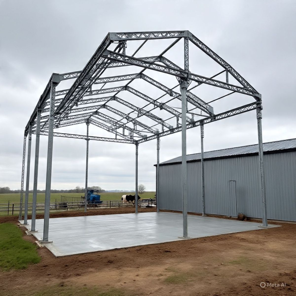 Hình minh họa 5: 🖼️ Hệ thống mái che và dầm kèo hoàn thiện cho trang trại gia súc