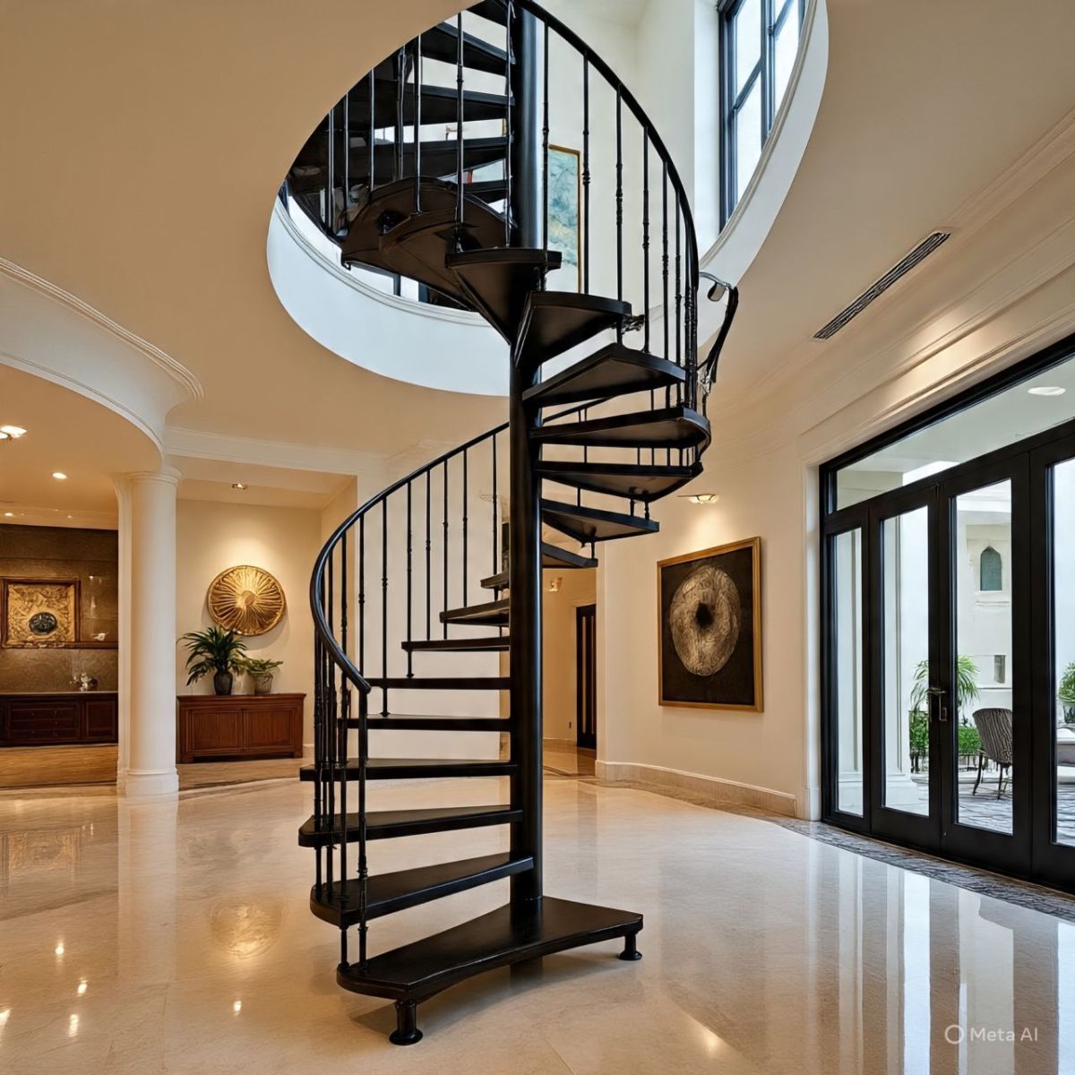 - Cầu thang xoắn: Tối ưu diện tích, tạo điểm nhấn hiện đại.