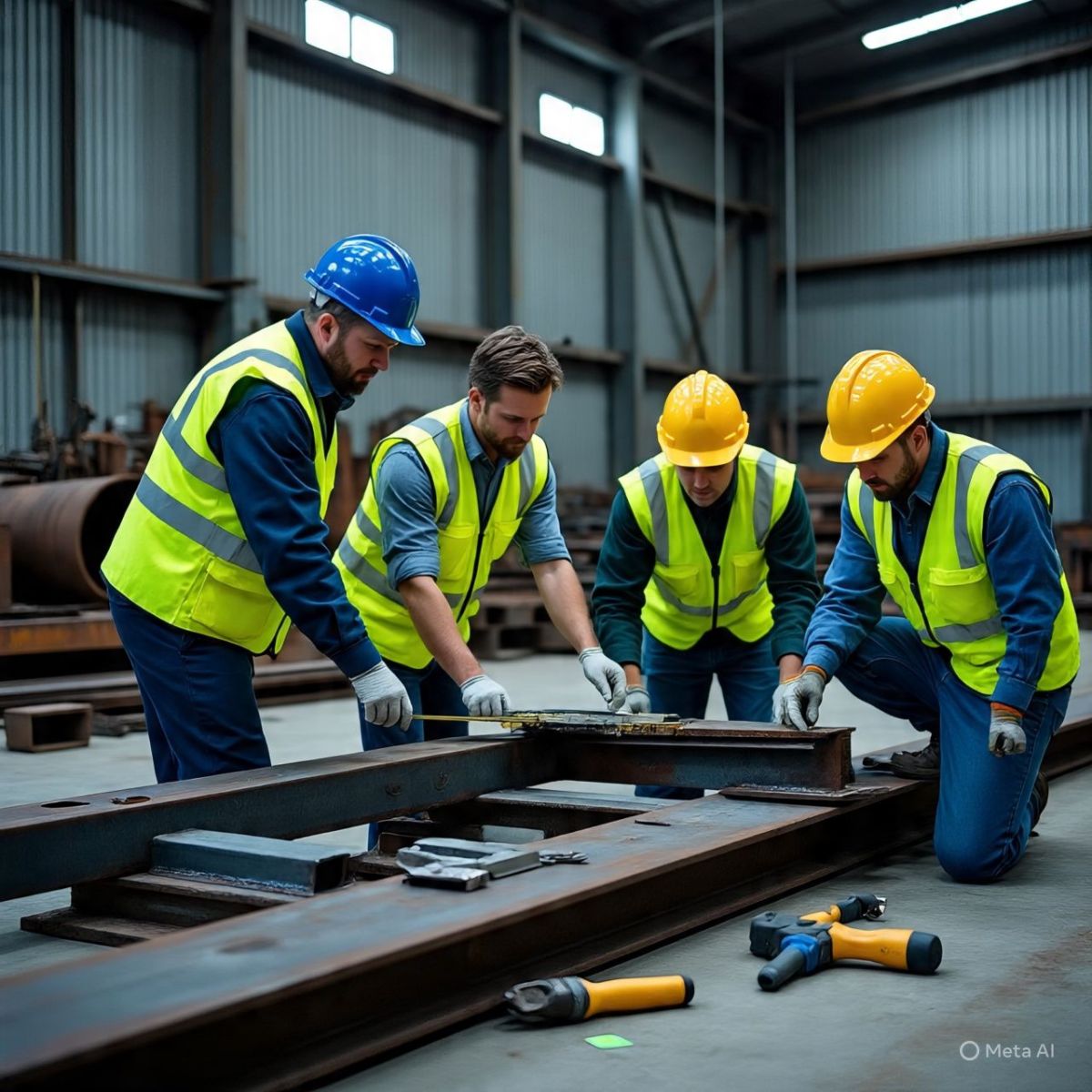 Hình 1: Minh họa đội ngũ kỹ thuật viên Prosimex đang kiểm tra kết cấu thép trước khi gia công