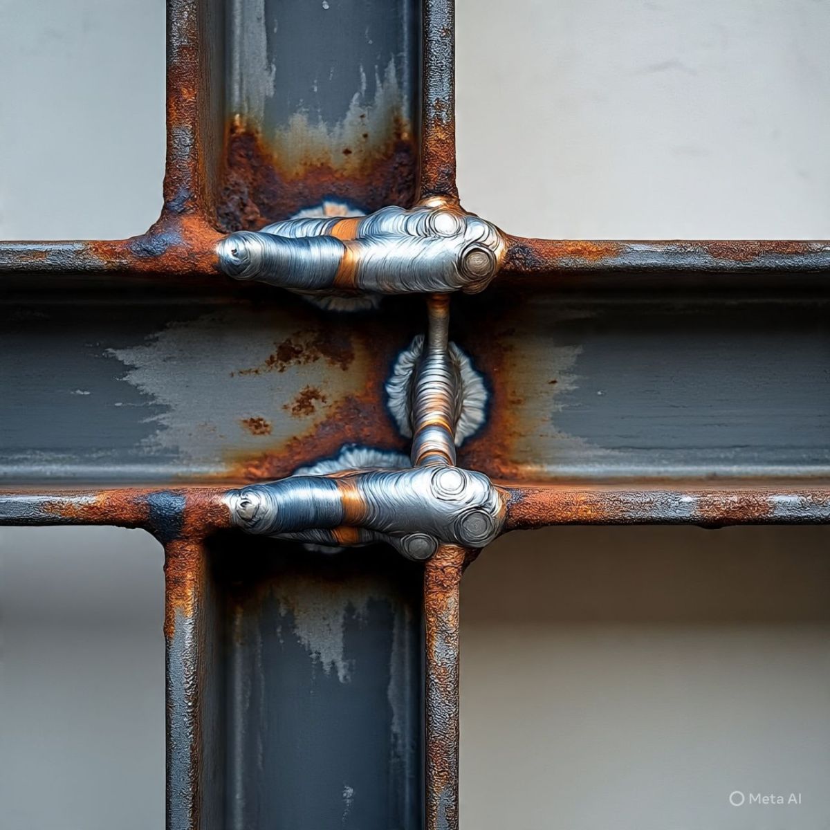 Hình 2: Cận cảnh các mối hàn yếu và rỉ sét trên dầm thép cần được gia công phục hồi