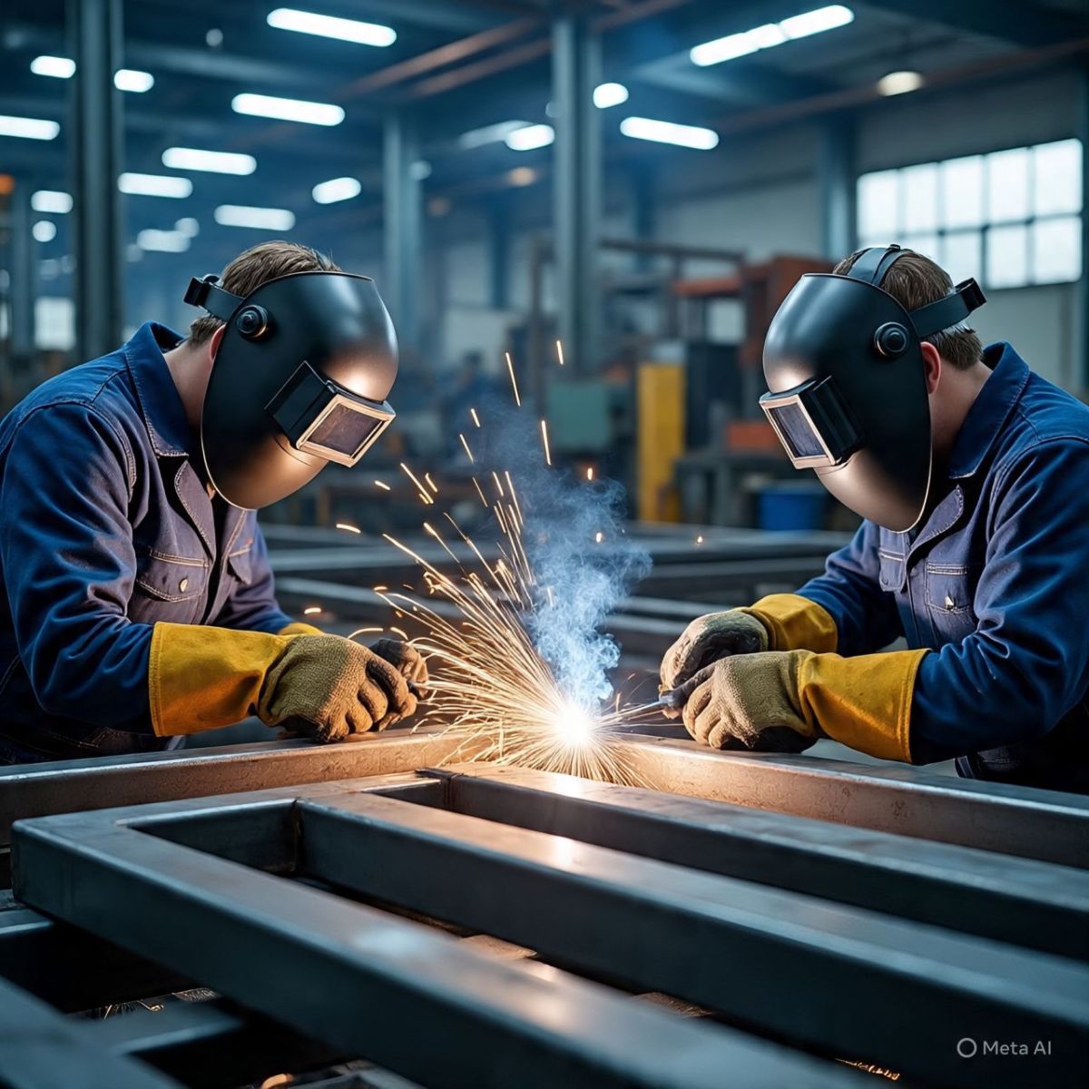 Hình 4: Công nhân Prosimex gia công và lắp đặt khung thép với công nghệ hàn MIG/TIG hiện đại.