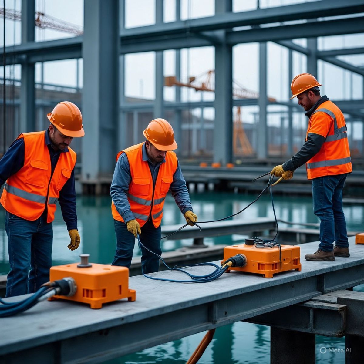 📸 Hình 5: Đội ngũ kỹ sư Prosimex đang lắp đặt và kiểm tra khớp nối pin nổi tại công trình