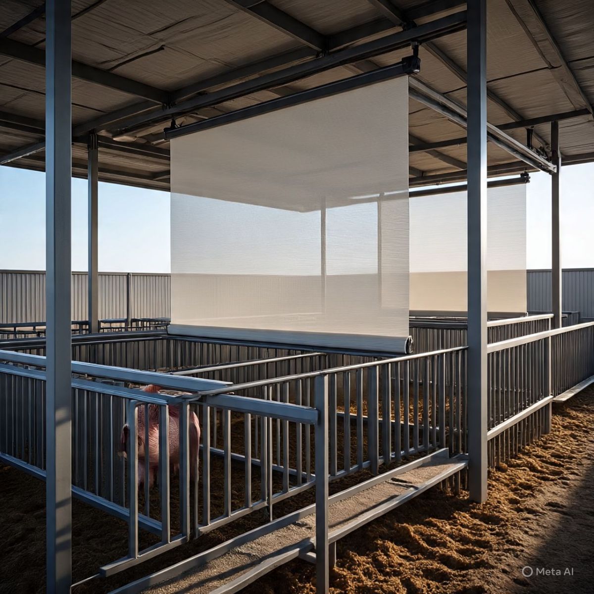 - Chuồng heo: Bạt che tự cuốn giúp kiểm soát nhiệt độ và độ ẩm.