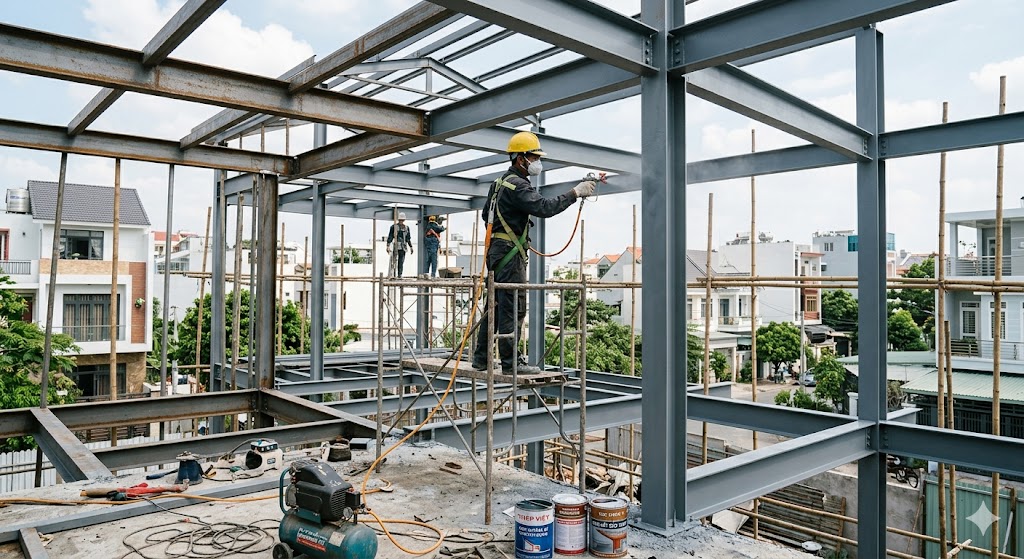 Hình 3: Sơn chống gỉ kết cấu thép dân dụng