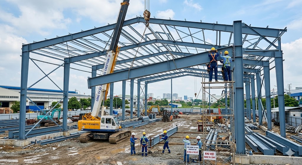 Gia công khung nhà thép tiền chế gồm những hạng mục nào? Quy trình chi tiết từ A–Z – Cơ Khí Prosimex