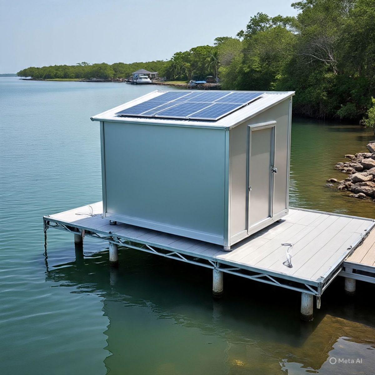 📸 Hình 4: Ứng dụng khung nhôm nhẹ trong hệ thống pin nổi di động phục vụ khu du lịch sinh thái