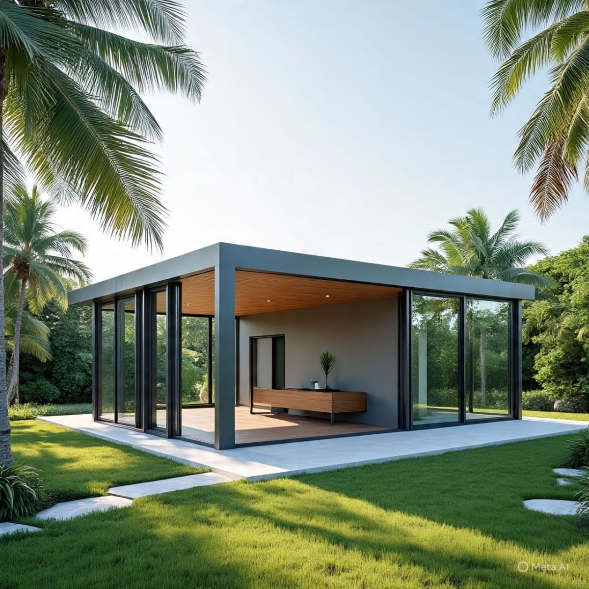 - Khung thép biệt thự sân vườn: Thiết kế mở, tạo không gian thoáng đãng.