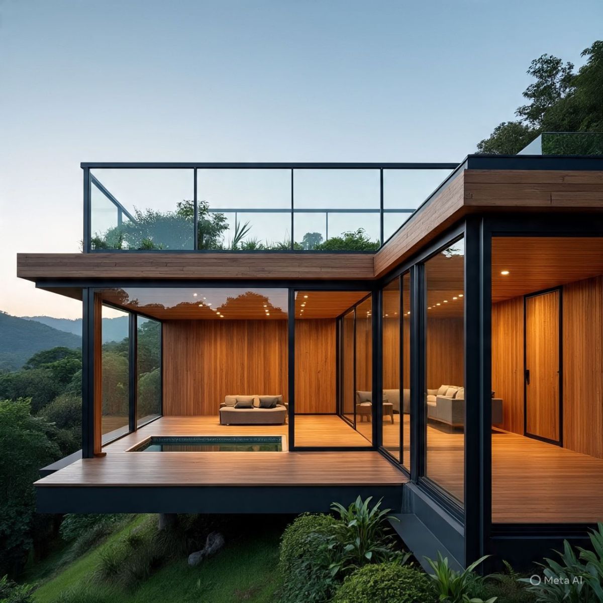 Hình 5 – Biệt thự khung thép hiện đại kết hợp kính và gỗ tại Đà Lạt, mang vẻ đẹp sang trọng và bền vững 🌿