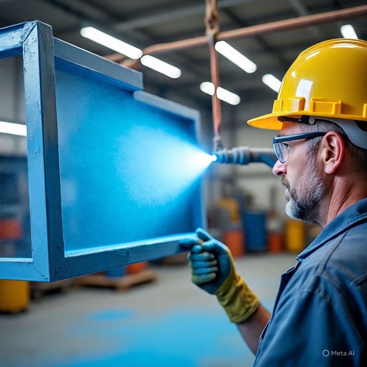 Hình 3 – Quy trình sơn tĩnh điện khung thép nhà để xe tại Prosimex, giúp tăng độ bền và thẩm mỹ ✨