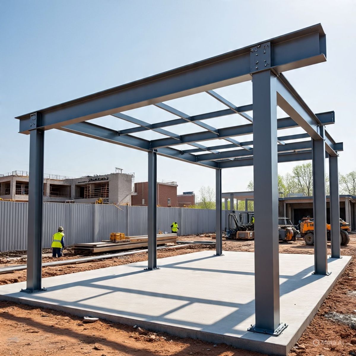 Hình 1 – Gia công khung thép nhà để xe hiện đại tại Prosimex, đảm bảo độ bền và tính thẩm mỹ cao 🏗️
