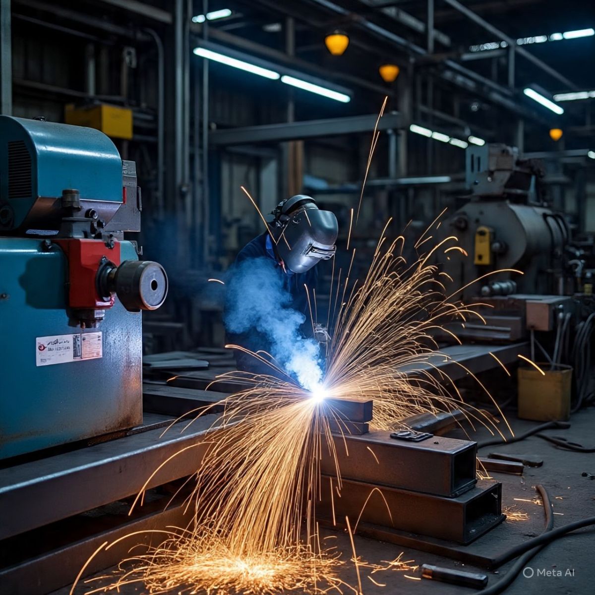 📸 Hình 2: Dây chuyền hàn tự động CNC trong quá trình gia công thép