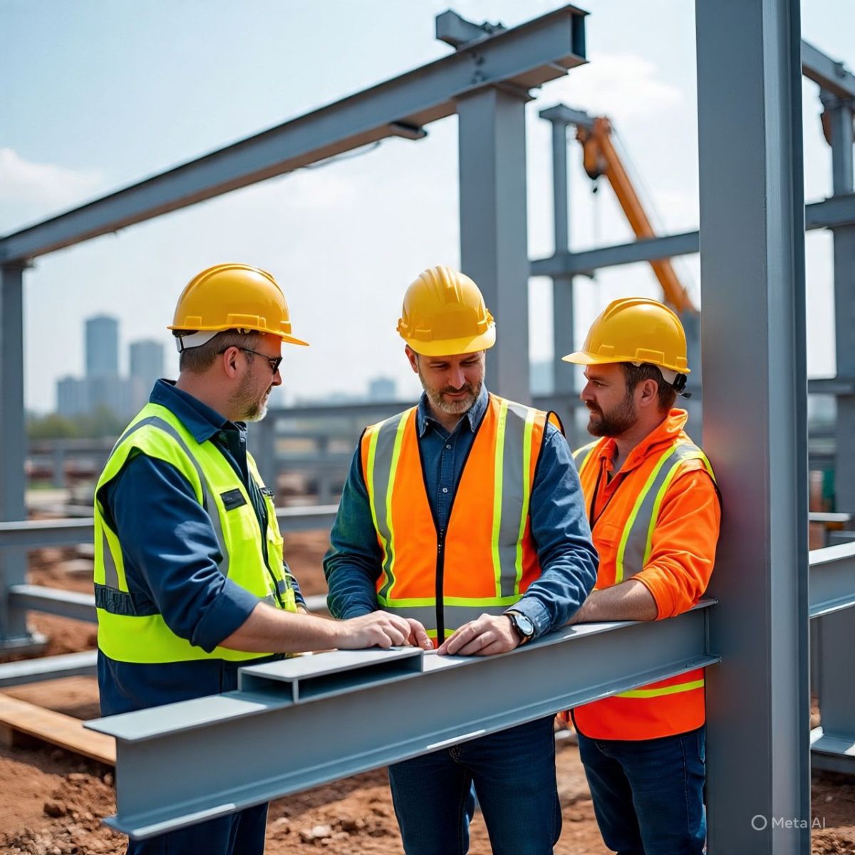 📸 Hình 4: Đội ngũ kỹ sư Prosimex kiểm tra chất lượng kết cấu thép trước khi lắp dựng