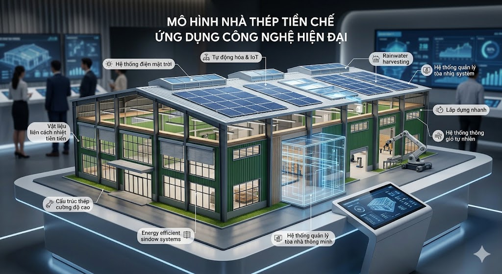 Hình 4: Mô hình nhà thép tiền chế ứng dụng công nghệ hiện đại