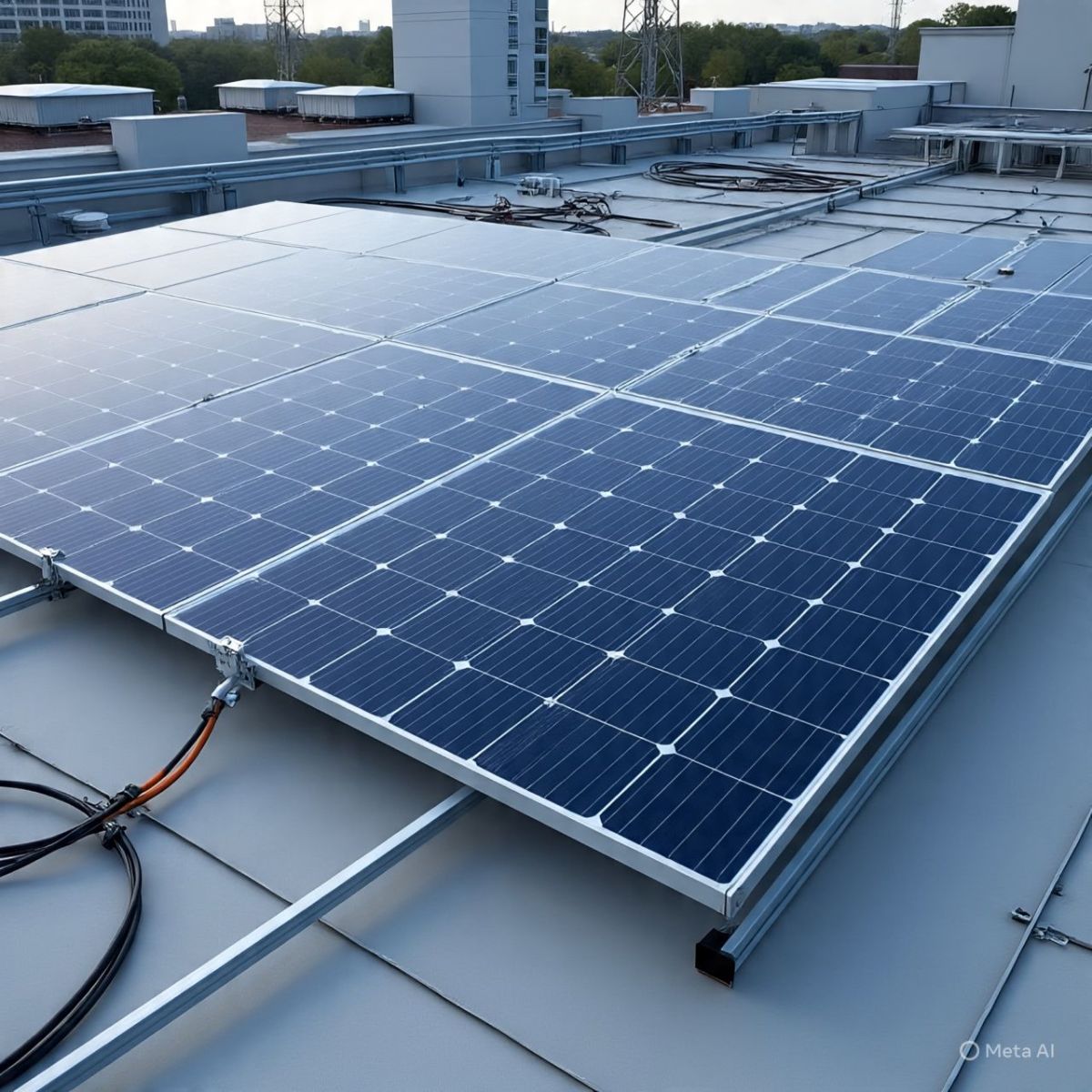 Hình 4: Hệ thống khung và giá đỡ pin năng lượng mặt trời công trình thương mại 🏢