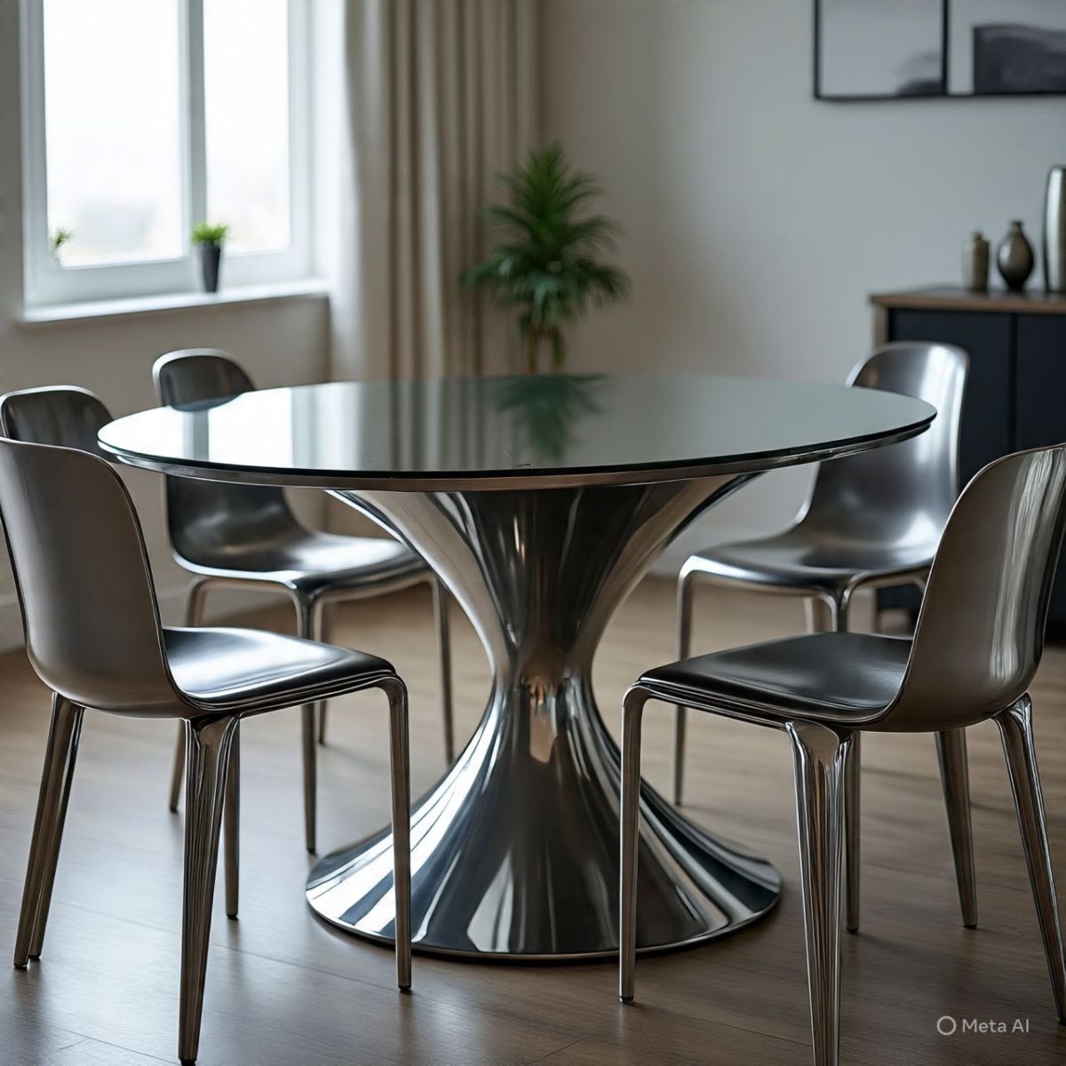 📷 Hình 4: Bộ bàn ghế phòng ăn khung kim loại mỹ thuật kết hợp mặt kính cường lực