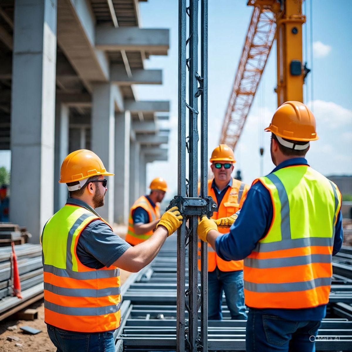(Hình 2: Công nhân Prosimex thi công lắp đặt khung thép với công nghệ hiện đại)