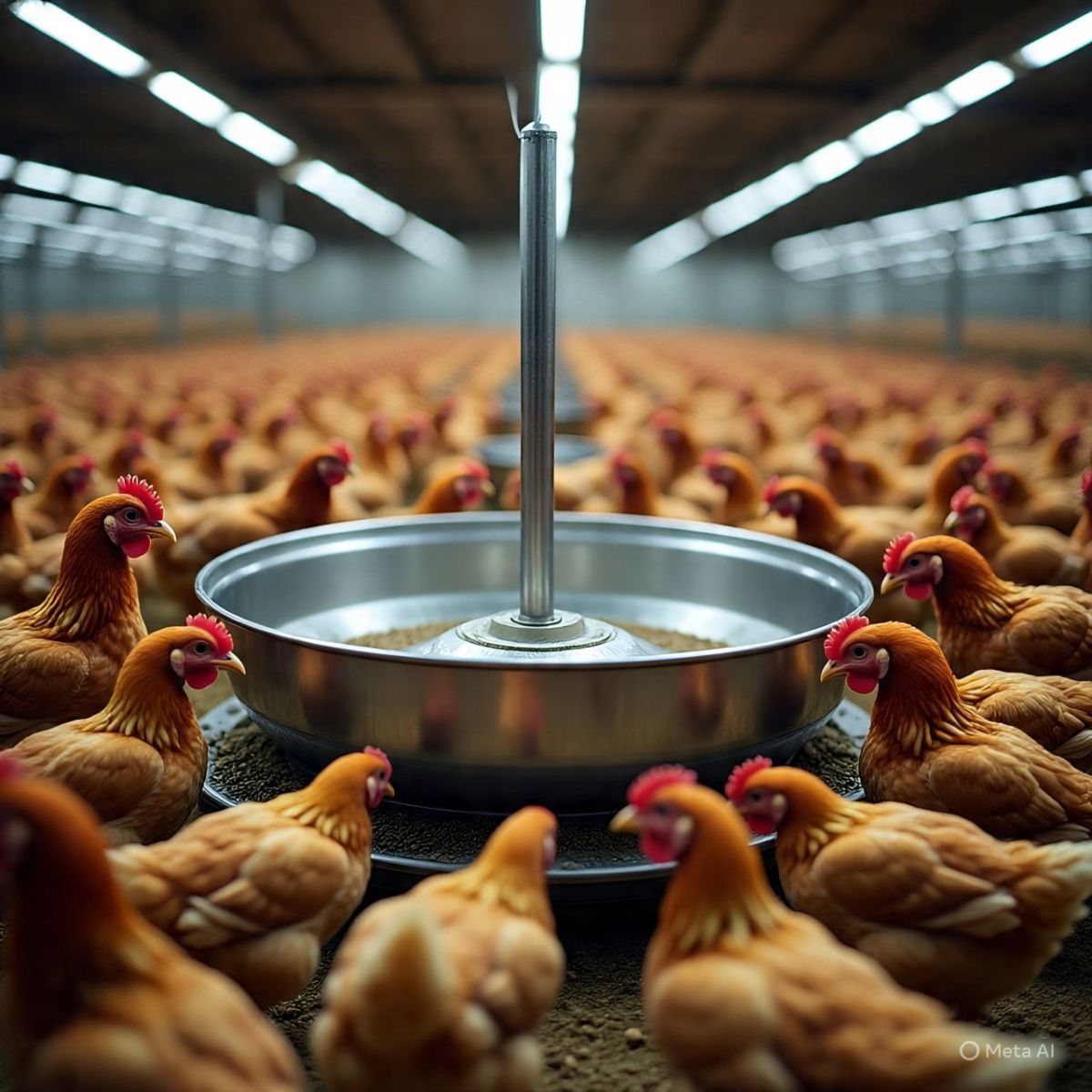 Hình 3: Hình minh họa máng cho ăn dạng tròn tự động cho gà thịt trong chuồng kín