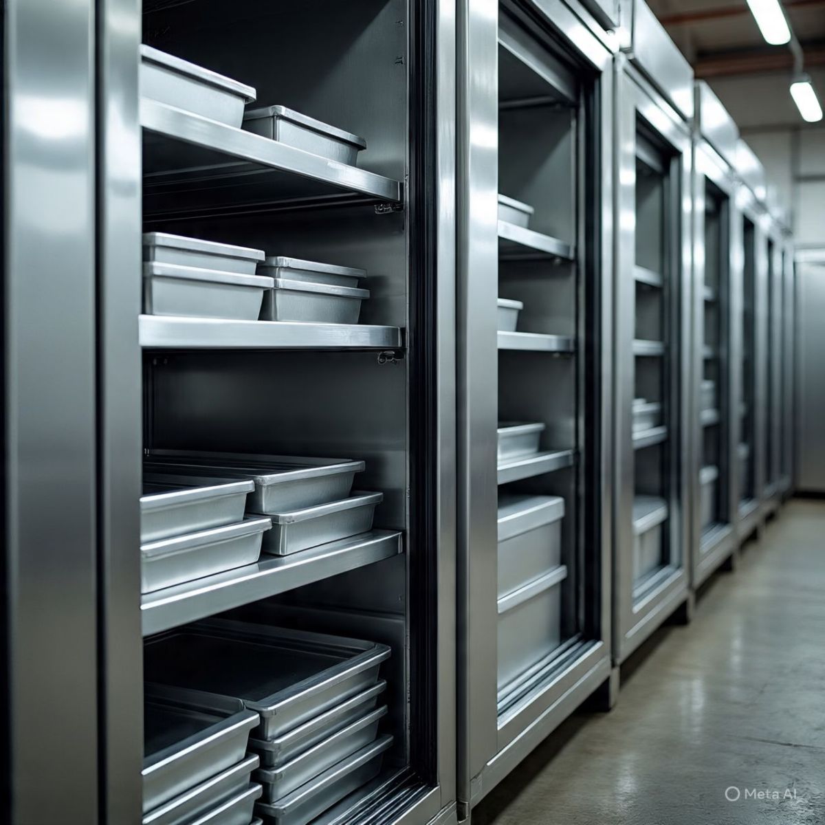 - Tủ đông công nghiệp: dung tích lớn, đòi hỏi phụ kiện chịu lực và chống gỉ tốt.