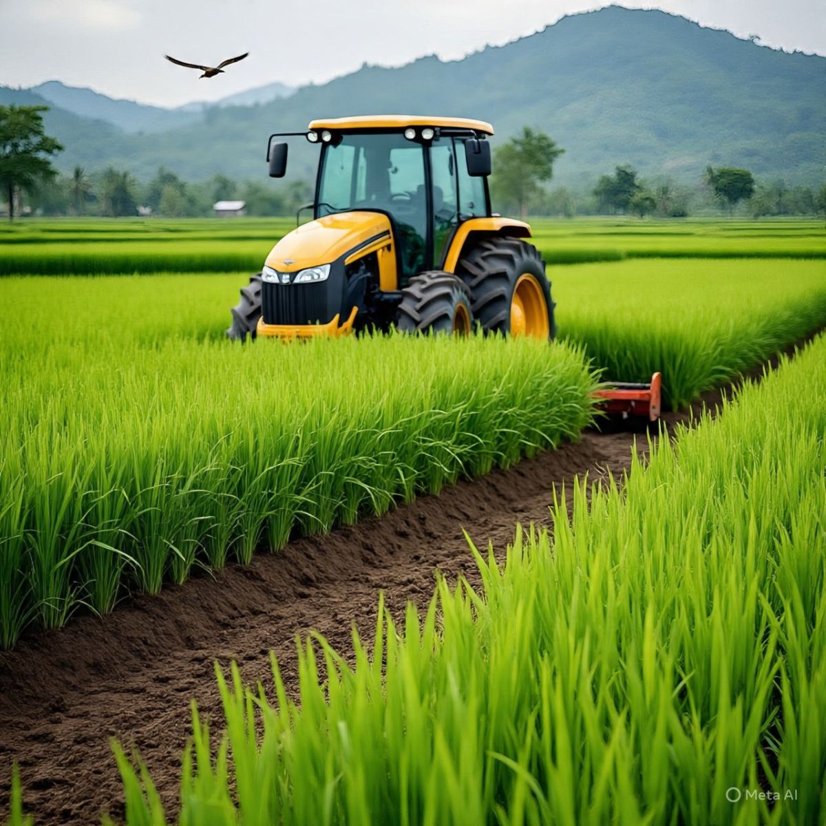 Hình 1: Máy cày Prosimex hoạt động trên cánh đồng lúa