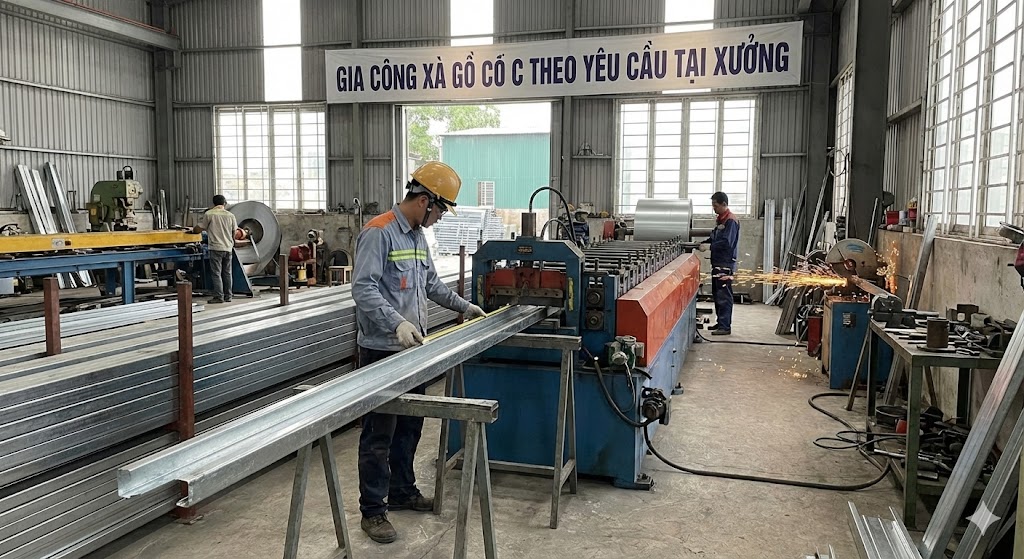 Hình 1: Gia công xà gồ C theo yêu cầu tại xưởng Prosimex TPHCM