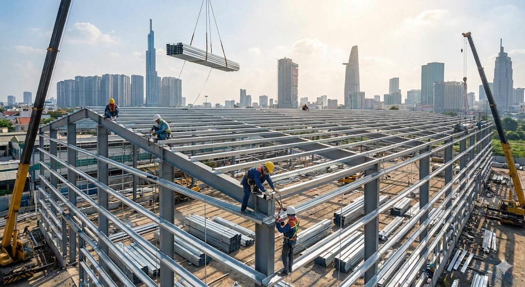 TPHCM là trung tâm kinh tế – công nghiệp lớn nhất cả nước, nơi tập trung hàng loạt khu công nghiệp, nhà xưởng sản xuất, kho logistics, nhà thép tiền chế với mật độ xây dựng cao. Điều này kéo theo nhu cầu rất lớn về gia công xà gồ C, Z ở TPHCM, đặc biệt là các đơn vị có năng lực: