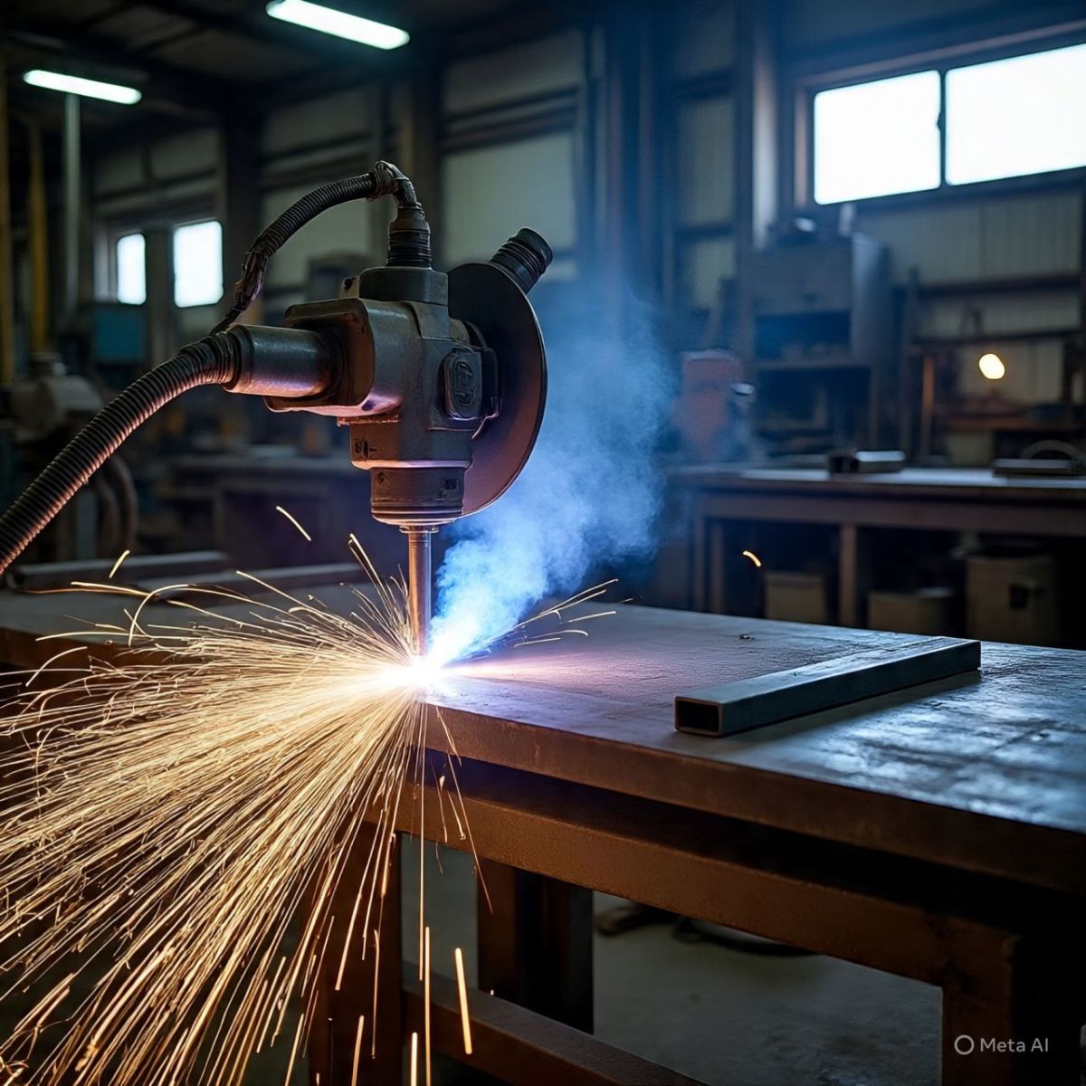 📷 Hình 4: Máy plasma công nghiệp cắt thép dày trong xưởng sản xuất.
