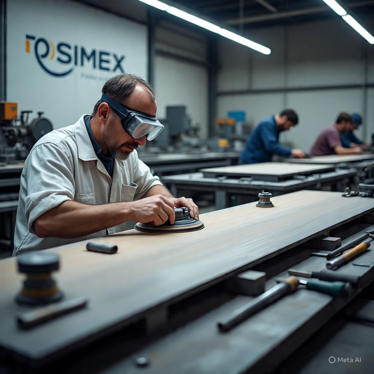 Hình 4: Thợ gia công tấm thủ công tại Prosimex – phù hợp chi tiết đặc thù hoặc sửa chữa.