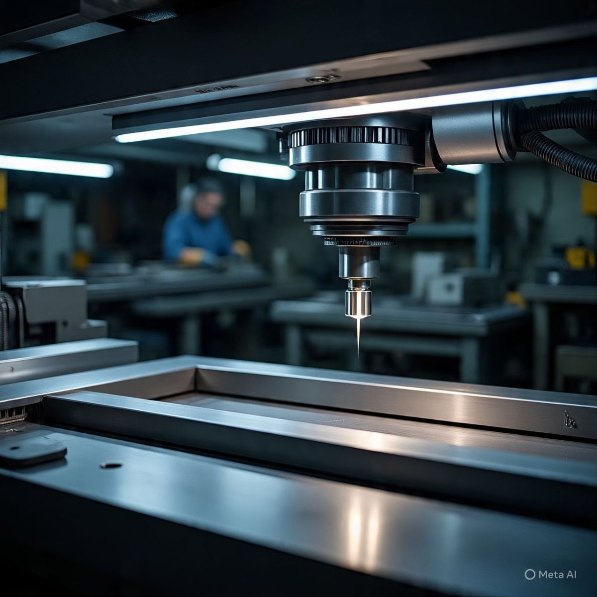 📷 Hình 2: Máy CNC hiện đại gia công khung kim loại nội thất với độ chính xác cao.