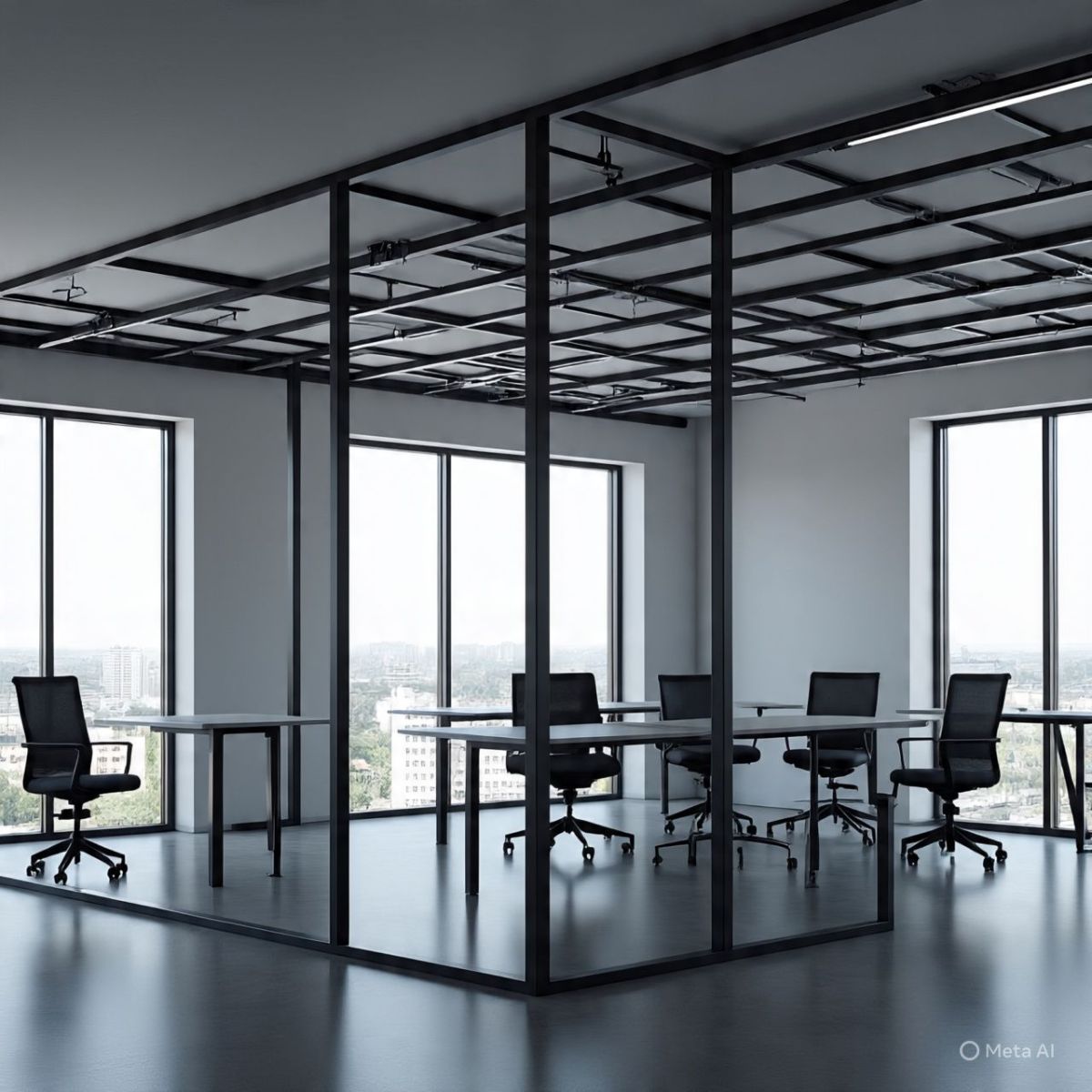 📷 Hình 5: Nội thất văn phòng khung thép CNC – đồng bộ, tiết kiệm chi phí sản xuất.