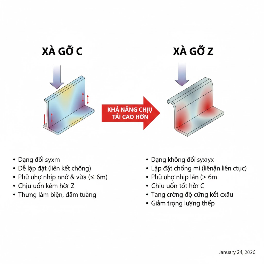 So sánh chi tiết xà gồ C và xà gồ Z theo từng tiêu chí kỹ thuật