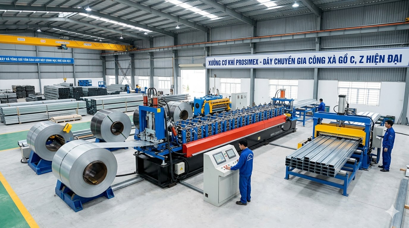 Trong bối cảnh ngành xây dựng ngày càng phát triển, yêu cầu về chất lượng vật liệu ngày càng cao, các doanh nghiệp cơ khí buộc phải đầu tư công nghệ, máy móc hiện đại để đáp ứng nhu cầu thị trường. Một trong những đơn vị tiên phong trong lĩnh vực này chính là Cơ Khí Prosimex, chuyên cung cấp dịch vụ gia công xà gồ C, Z theo tiêu chuẩn kỹ thuật cao, đáp ứng đa dạng nhu cầu từ các công trình nhỏ đến dự án quy mô lớn.
