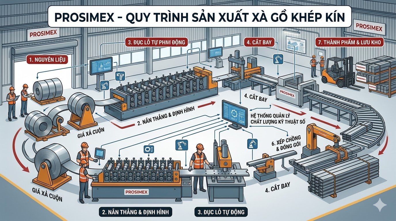 Tiêu chuẩn kỹ thuật cần biết khi gia công xà gồ C, Z – Giải pháp tối ưu từ Cơ Khí Prosimex