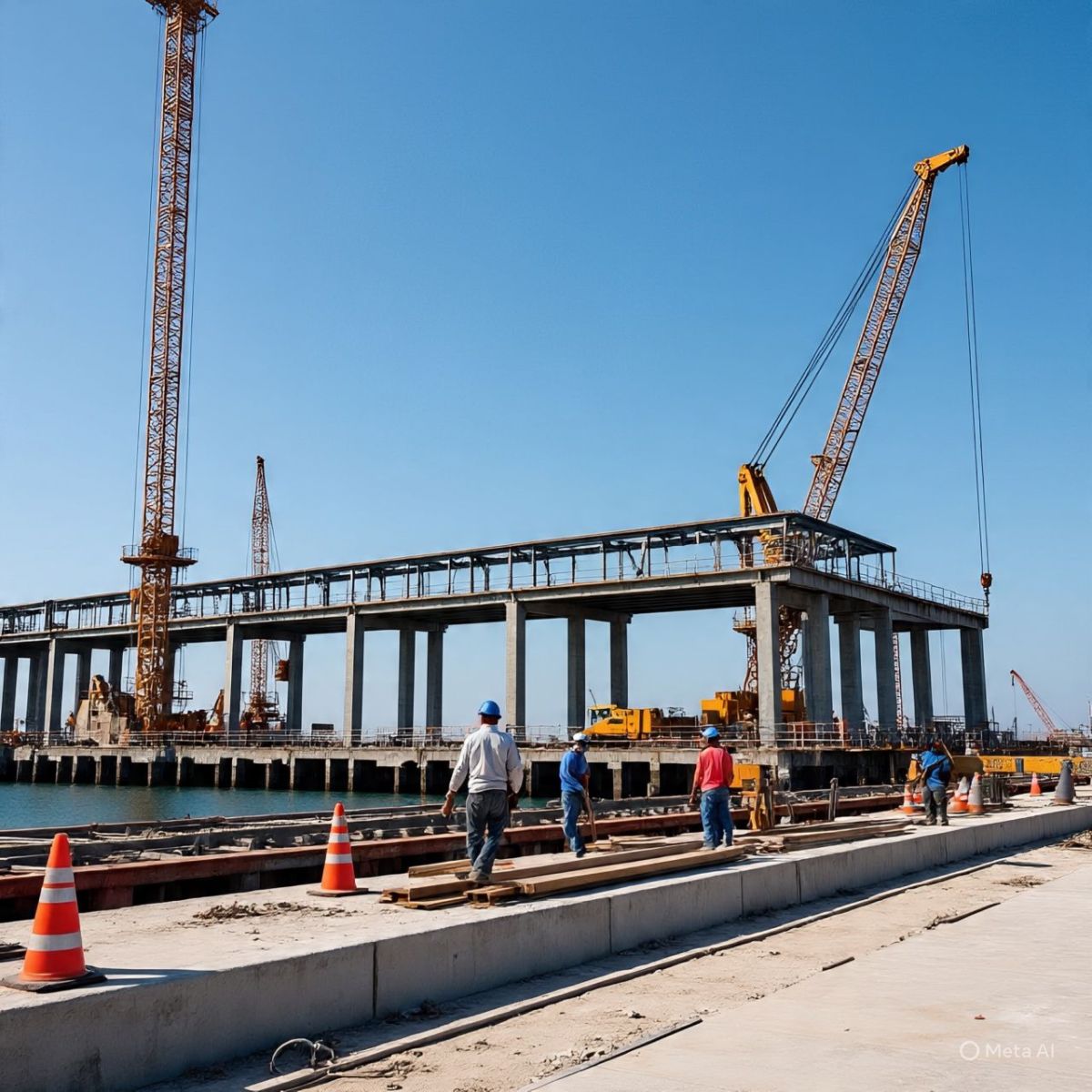 Kết cấu thép cầu cảng, bến tàu đảm bảo chịu tải trọng tàu thuyền, container, thiết bị nâng hạ, chống ăn mòn trong môi trường biển.