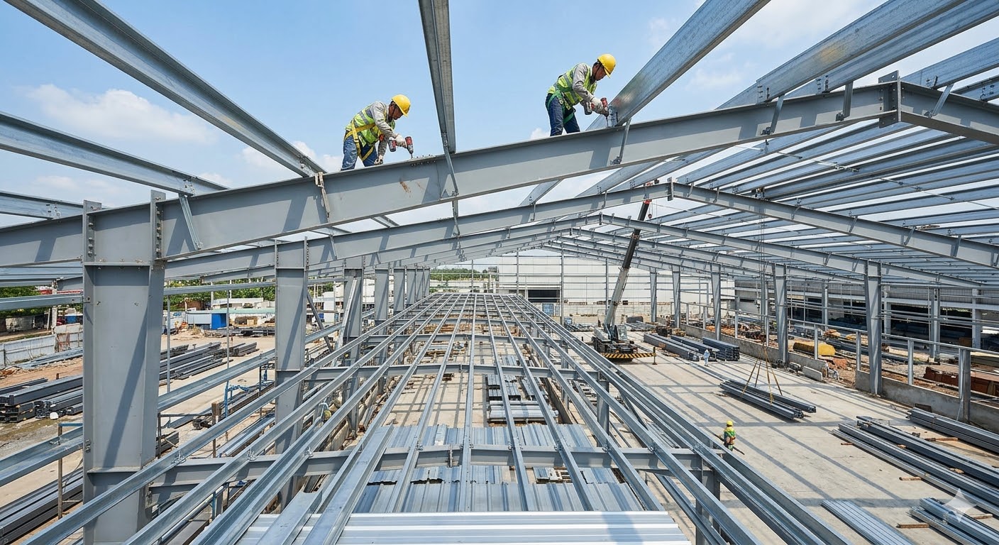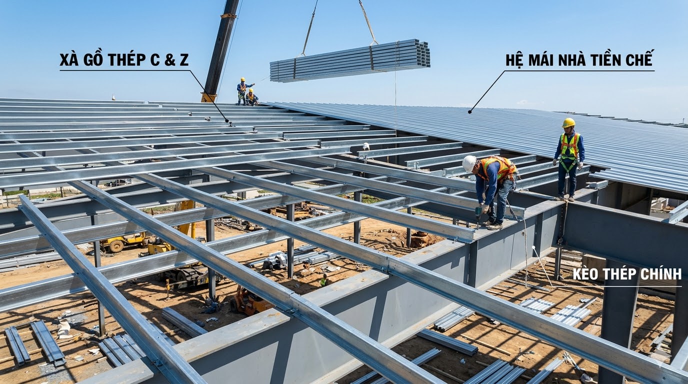 Trong nhà thép tiền chế, xà gồ đóng vai trò: