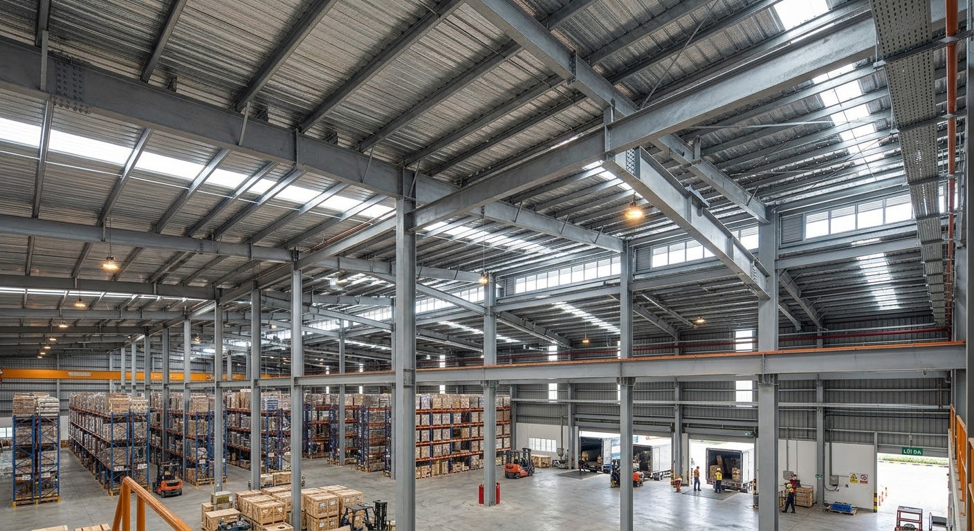 Hình 3: Hệ xà gồ thép trong nhà kho công nghiệp